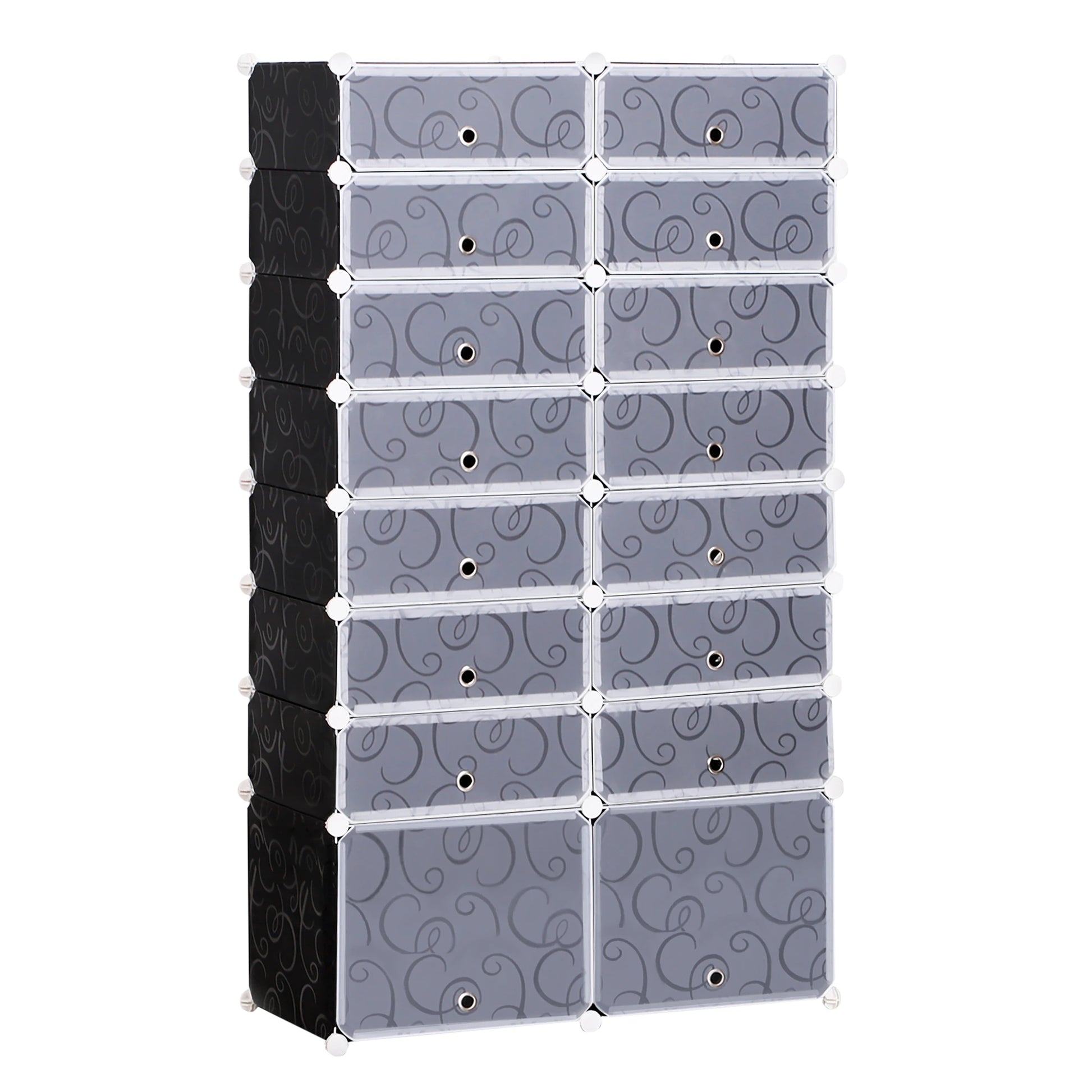 SEMI-TRANSPARENT: The special design of the show cabinet allows you to find your shoes quickly. Finished with an elegant swirl pattern design.