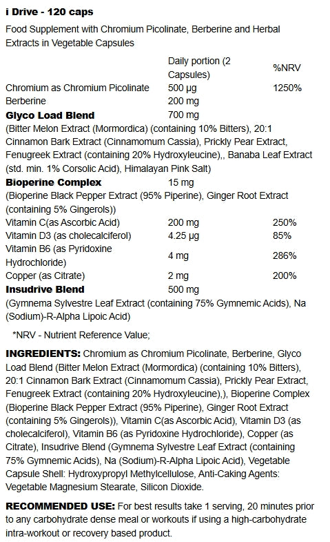 i-DRIVE is a glucose disposal supplement which can move insulin's natural ability to shuttle amino acids, creatine, and carbohydrates directly into muscle tissue. Great for gym goers and athletes