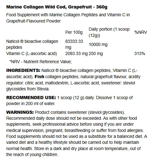 Naturally flavoured with grapefruit and sweetened with stevia, it dissolves seamlessly into beverages and culinary preparations. Each serving provides a premium, science-backed approach to collagen supplementation without artificial additives. Ideal for those seeking sustainable marine nutrition with proven efficacy