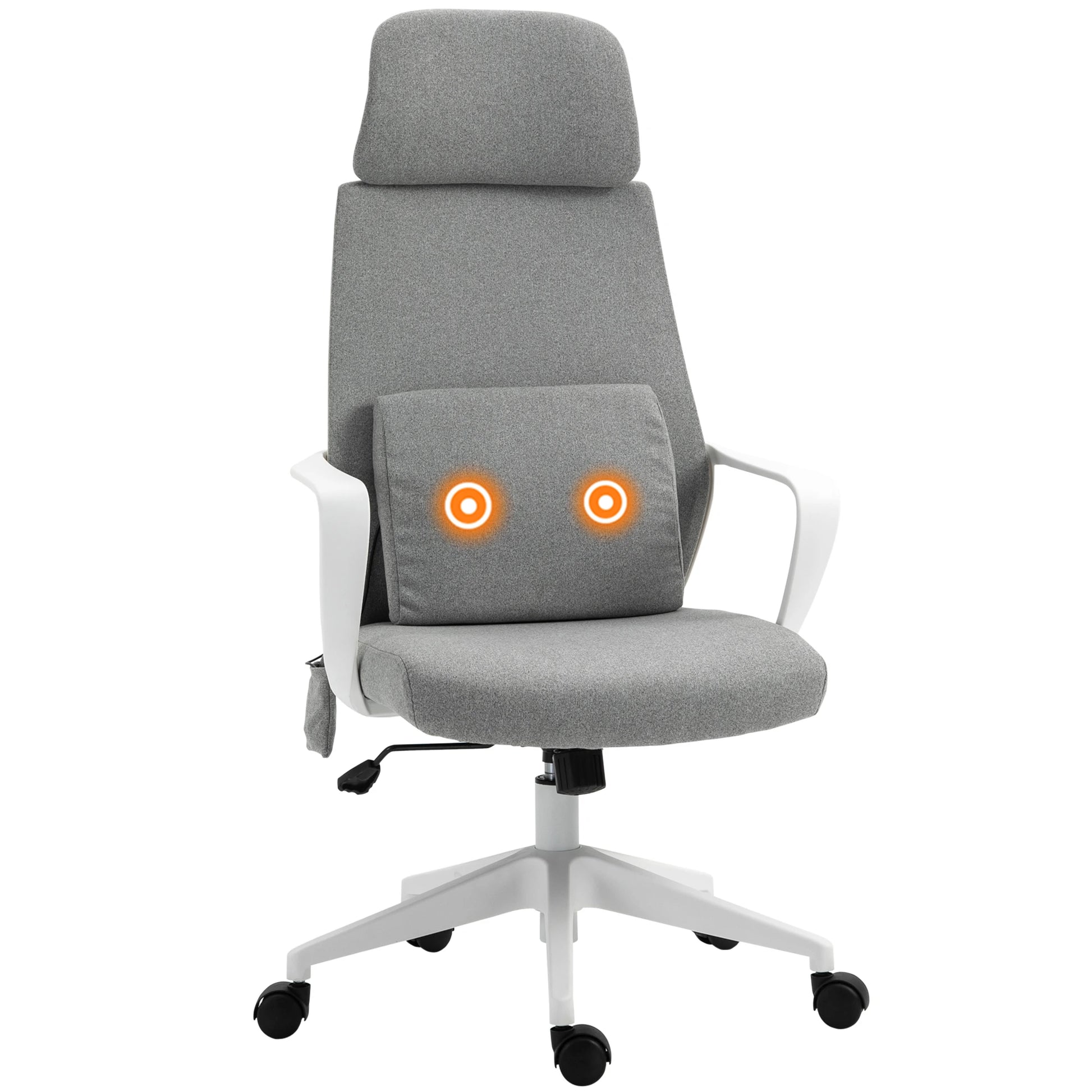 Comfortable features: Massage office chair has a large seat, tall back, large headrest and fixed armrests. Seat tilts forwards and backwards, range is also adjustable.