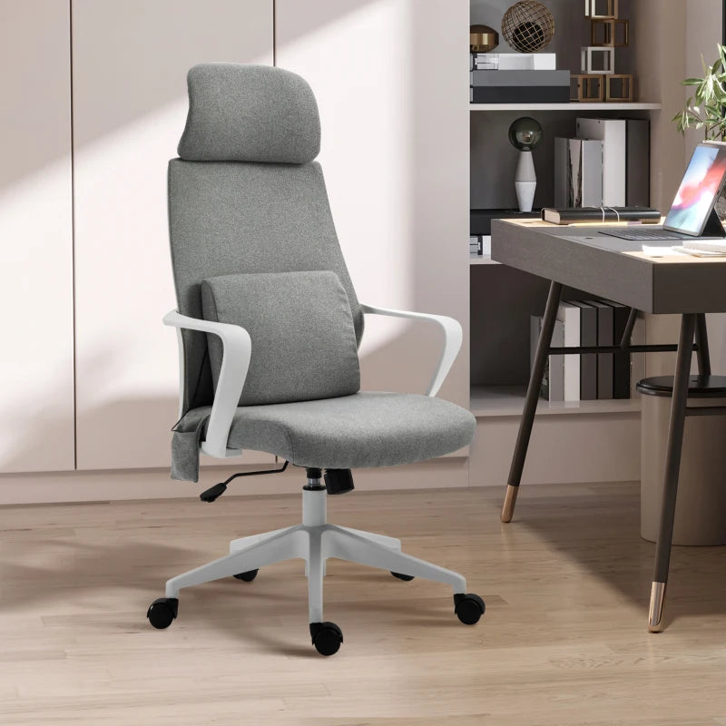 Computer Gaming Chair with 2 Points Massage Lumbar Pillow, Adjustable Headrest and Seat Height, Rolling Swivel Wheels for Home Work Study, Grey
