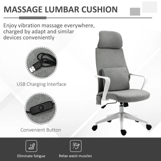 Gaming/Office Chair w 2point Massage Lumbar Cushion GREY