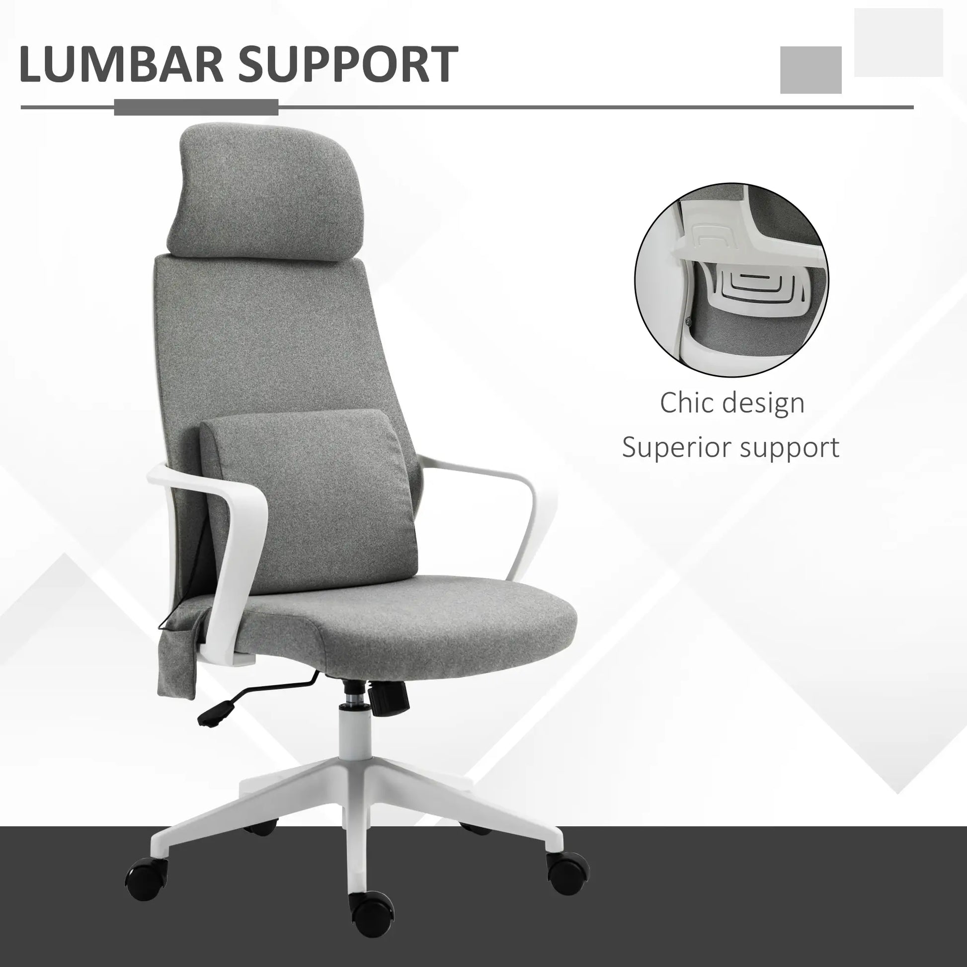 Adjustable seat and headrest height: Seat of this home office chair is adjustable between 114-122cm, with a 3cm adjustable headrest range on this desk chair.
