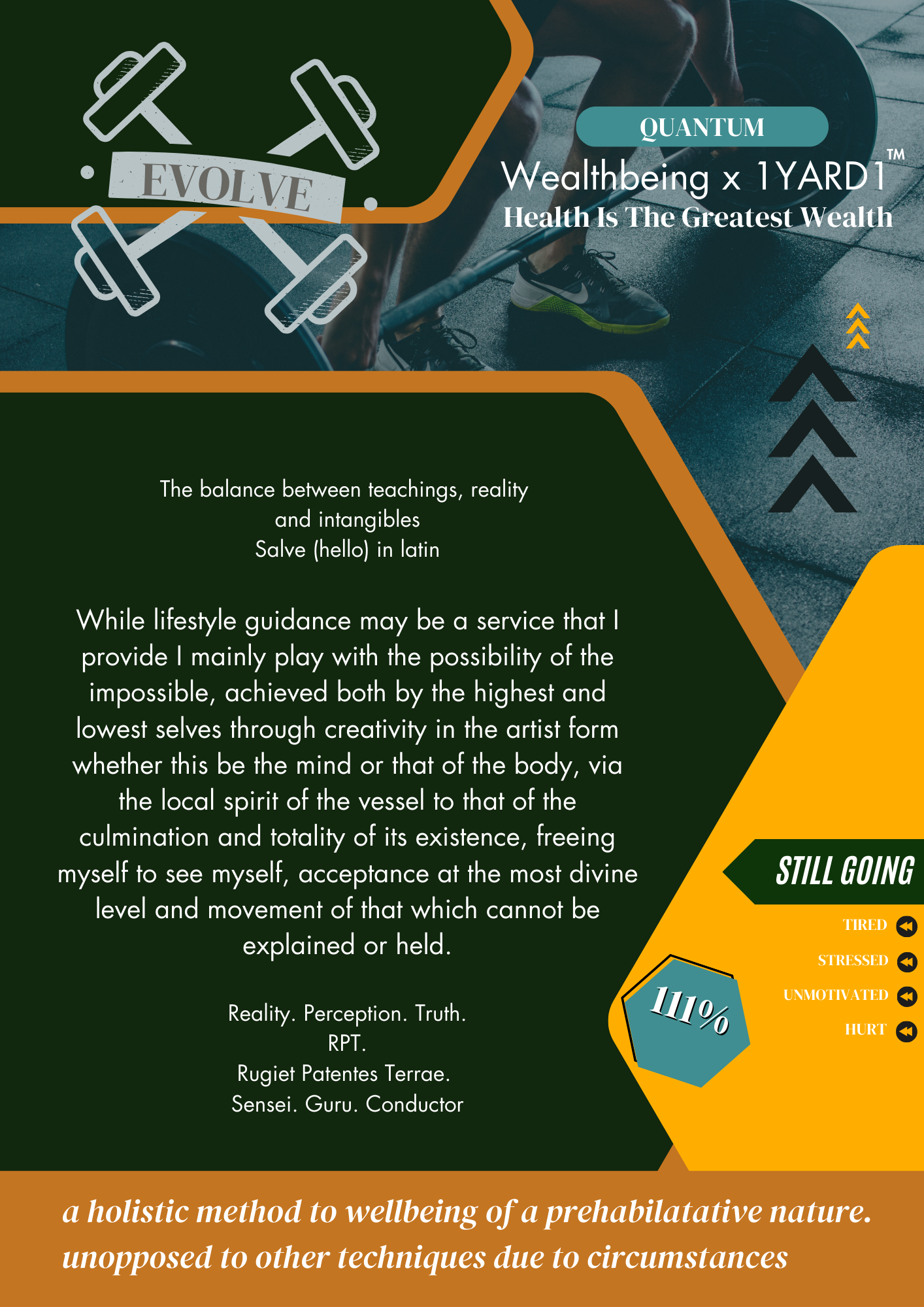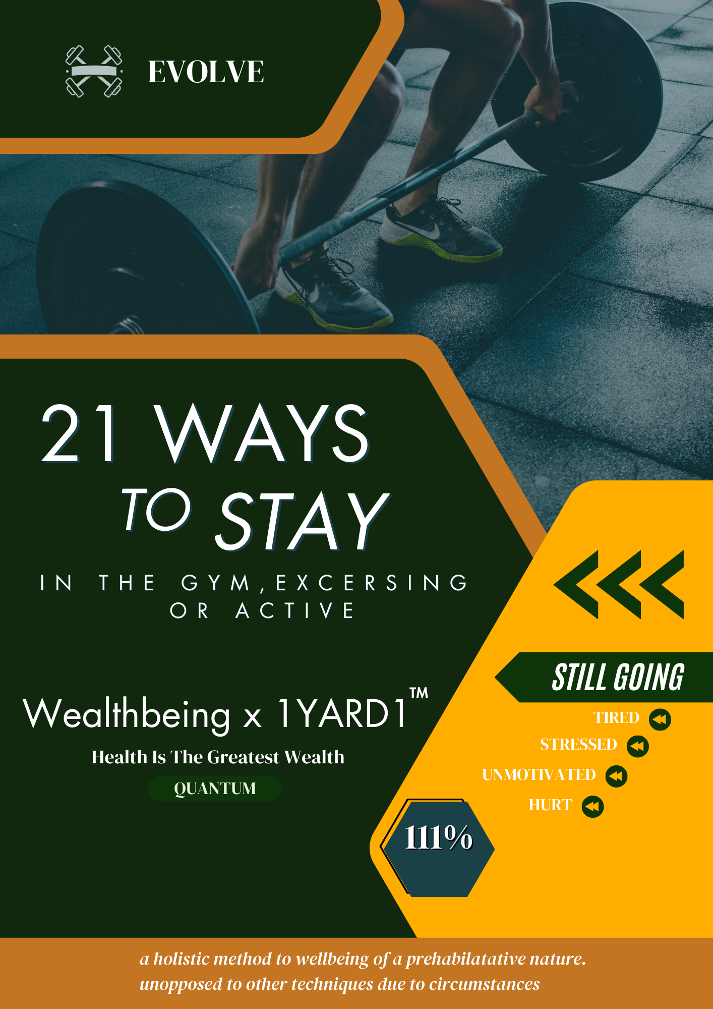 To Achieve this intension use your health as a long-term relationship with yourself. The fitness you want and need can make that relationship stronger. Taking your wellbeing into consideration with this guides your journey in the moment and the future, all of which leads to a lifestyle that has abundant wealthbeing.